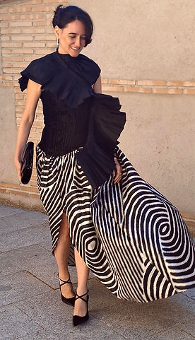 Este trabajo viaja por el tiempo, desde el Treccento en Venecia, con la técnica de los maestros del pigmento natural al temple, y se inspira en Picasso, en sus rayas, en sus rombos, en ese color azul, en ese rosa, hasta abrazar técnicas de abstracción y geometría.
